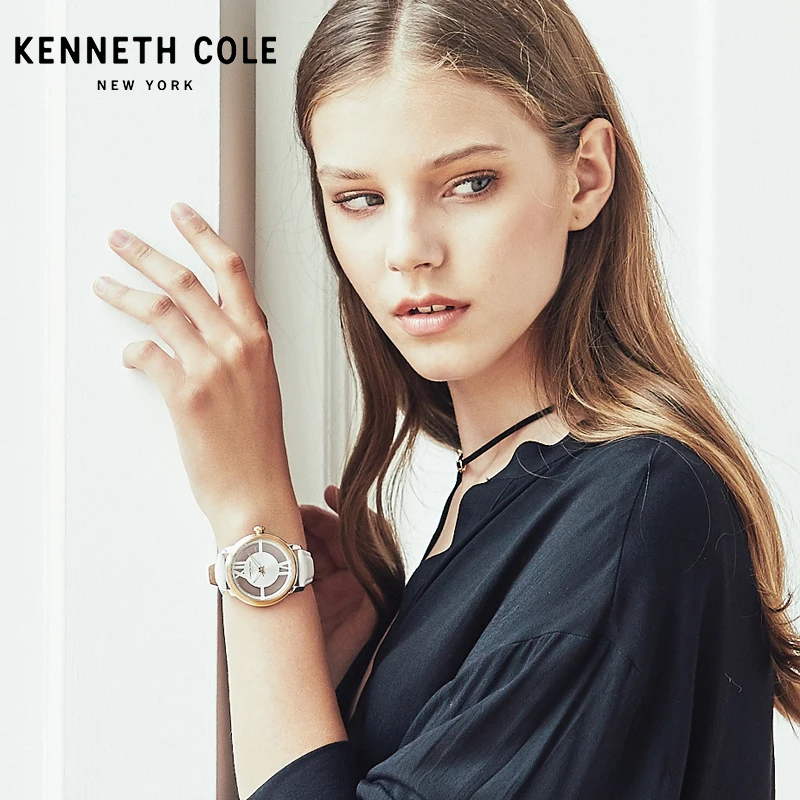 Beste Koop Kenneth Cole Originele Vrouwen Horloges See through Lederen Gesp Quartz Goud Wit Waterdicht Lady Luxe Horloge KC10024374 Goedkoop