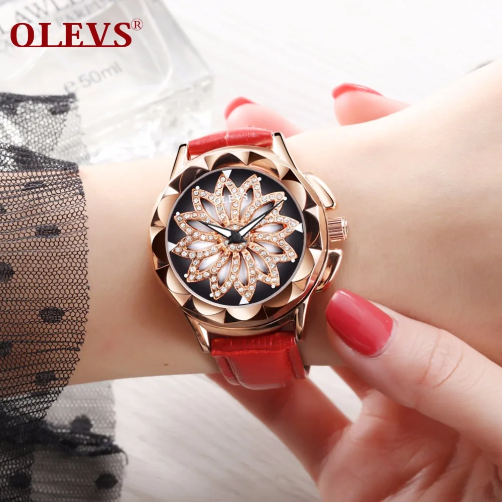 Beste Koop Bling Strass OLEVS Luxe Lederen Band Quartz Horloge Vrouwen Klok Vrouwelijke Jurk Gift Rose Gold Ladies Horloge relojes mujer Goedkoop