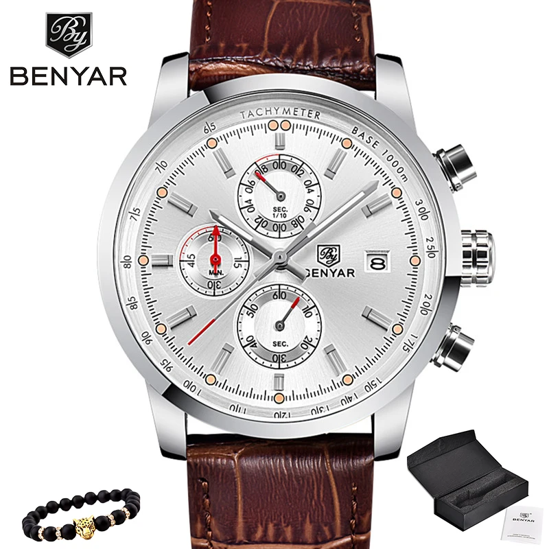 Kopen Goedkoop BENYAR Business Quartz Horloge Mannen Sport Horloge Luxe Merk Lederen Horloge Mannen Chronograaf Horloge Mannelijke Klok Relogio Masculino Prijs
