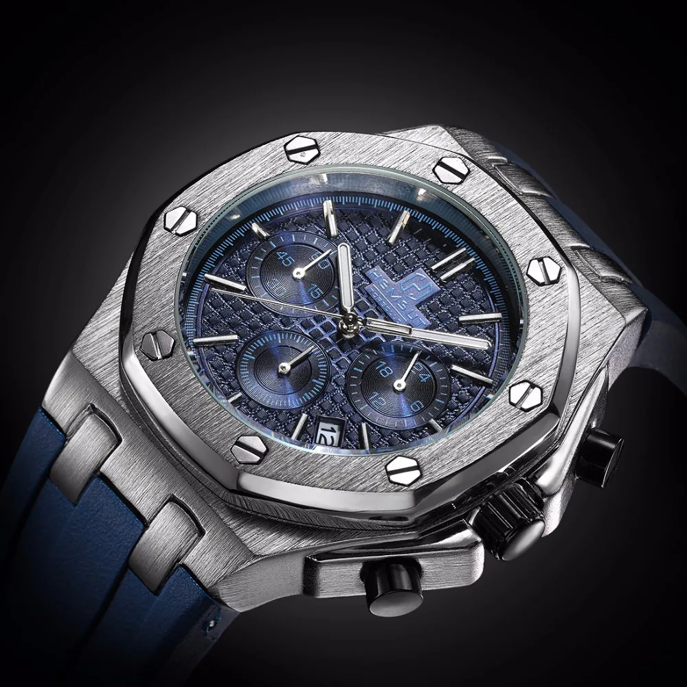 Kopen Goedkoop Gloednieuwe Mannen Horloge Quartz Horloge Blue Rubber Band 3ATM Waterbestendig Chronograph Mens Quartz Polshorloge Prijs