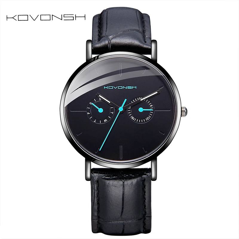 Kopen Goedkoop KOVONSH Mode Echt Leer Mannen Horloges mannen Horloge Business Gentleman Horloge Gifts Present Dropshipping Met Weinig Naald Prijs