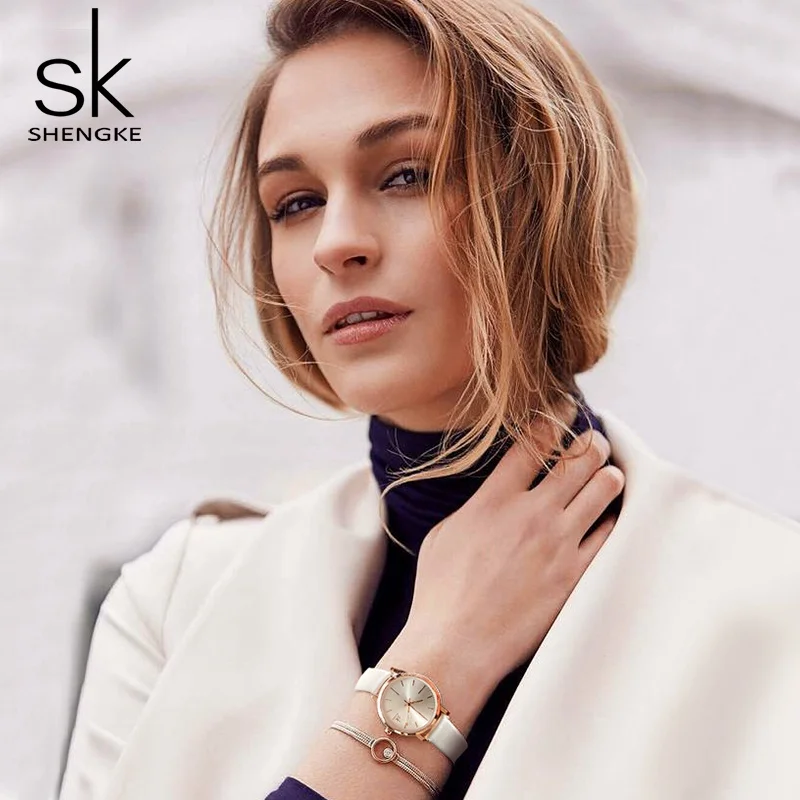 Beste Koop Shengke vrouw horloge 2018 Top Merk Luxe Quartz Horloge Vrouwen Lederen Horloges SK Reloj Mujer Hombre Goedkoop