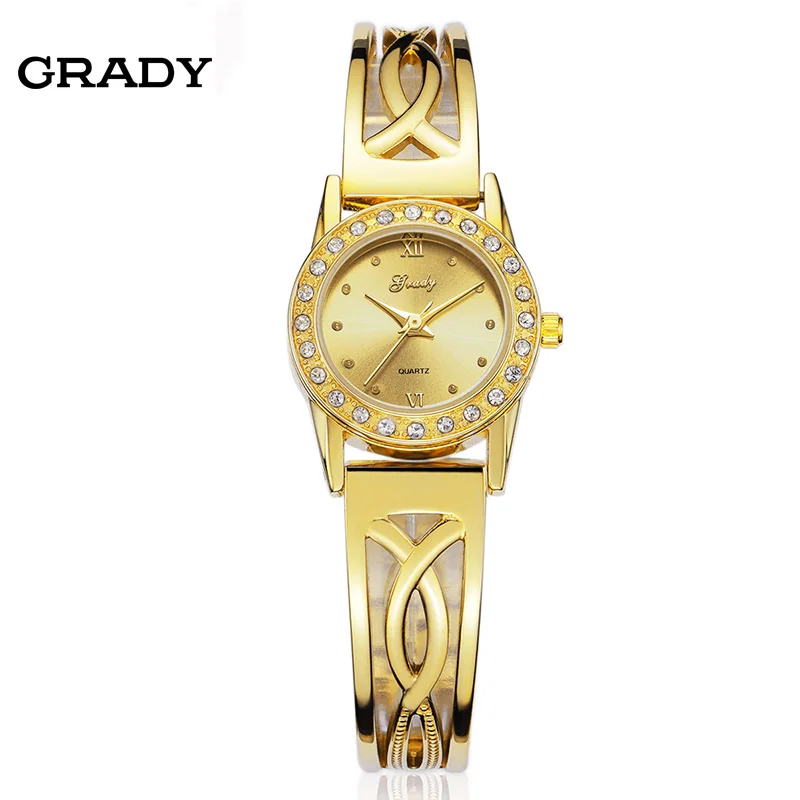 Beste Kopen Nieuwe Mode Dames Gold Horloge Vrouwen Strass Jurk Horloges Analoge Quartz Horloge Horloges Gratis Verzending Reloj Mujer Goedkoop