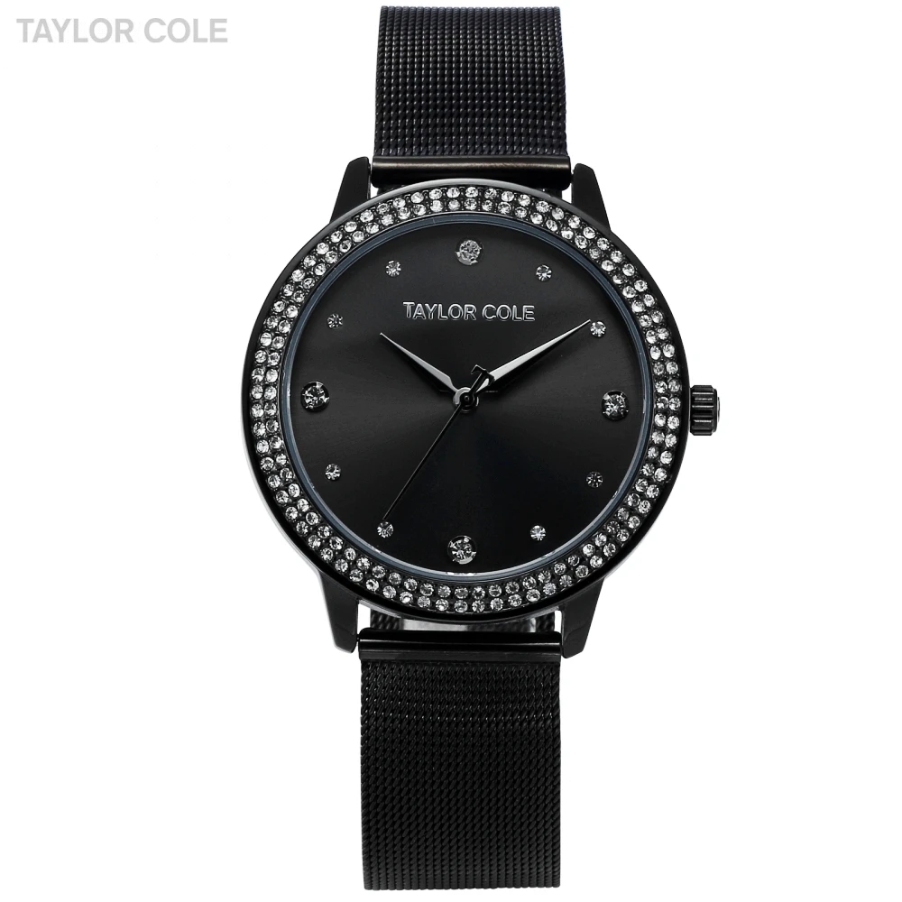 Kopen Goedkoop Taylor Cole Luxe Ronde Volledige Black Crystal Case Lady Feminino Slanke Quartz Stalen Band Armband Klok Vrouwen Zegarek Damski TC073 Prijs