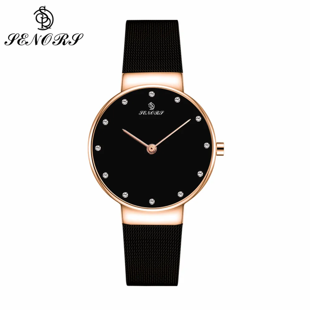 Kopen Goedkoop SENORS Luxe Goud Vrouwen Horloge Waterdicht Ultradunne Dameshorloge Mesh Stalen Band Eenvoudige Quartz Horloges Vrouwelijke Klok SN030 Prijs