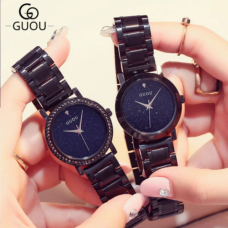 Goede Koop Luxe Merk Volledige Staal Crystal Glitter Wijzerplaat Zwart Armband Dameshorloge Casual Vrouwen Horloge Quartz Horloge Relogio Feminino Goedkoop