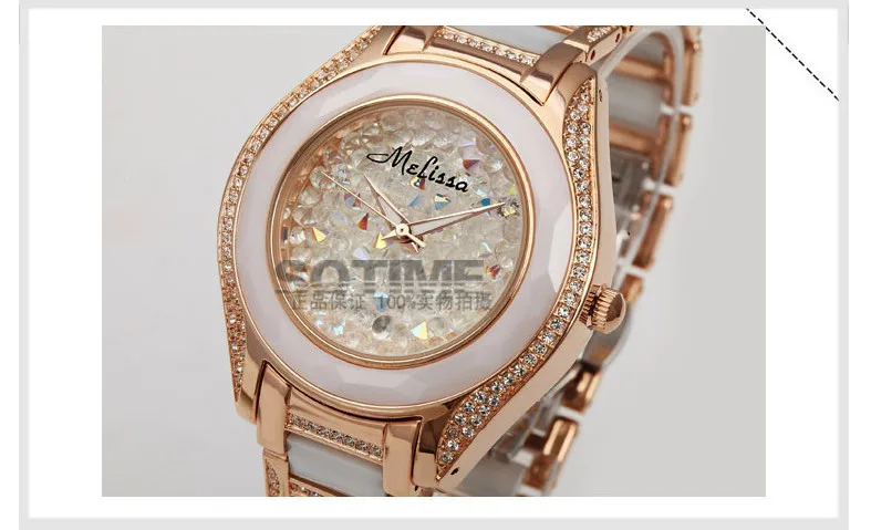 Goede Kopen Elegante Fashion Vrouwen Keramische Horloges Meisjes Shining Kristallen Dress polshorloge HK Brand MELISSA Klok Quartz Analoog Montre femme Goedkoop