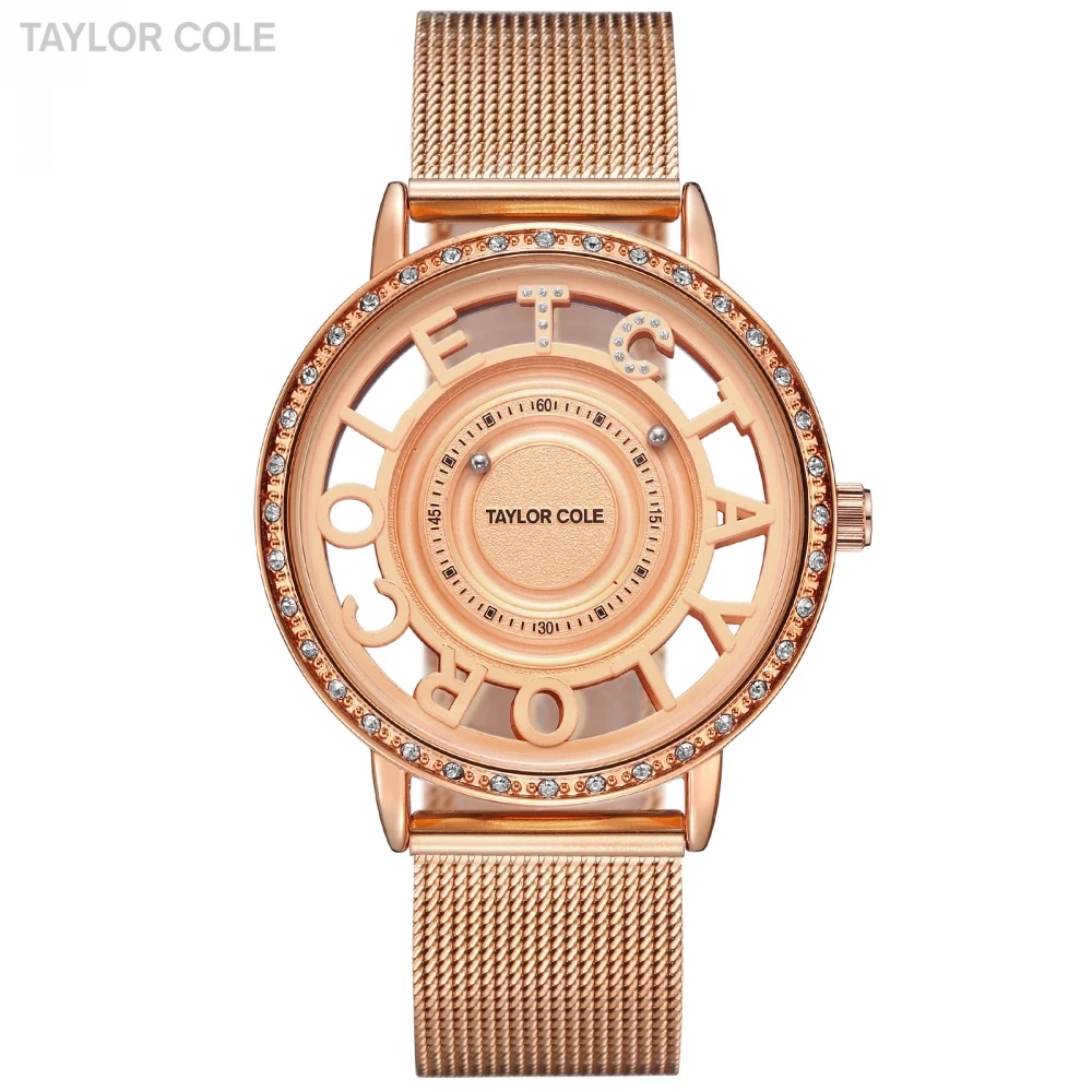 Goede Kopen Taylor Cole Rose Golden Lady Horloge Vrouwen Fashion Brand Casual Quartz Roestvrij Band Crystal Horloges Relogio Feminino TC129 Goedkoop