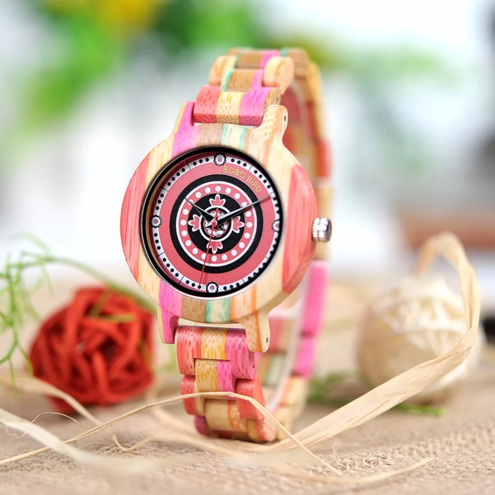 Beste Koop BOBO VOGEL Vrouwen Horloges Kleurrijke Case Reloj Hombre Quartz Houten Voor Dames Kan OEM Goedkoop