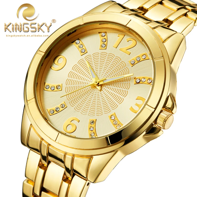 Beste Koop Vrouwen luxe horloges merk kingsky quartz horloge voor dames legering analoge display goud mode causale klok 2017 nieuwe Goedkoop