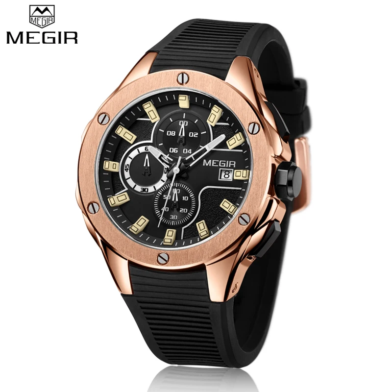 Beste Koop MEGIR Nieuwe Merk Quartz Horloges Mannen Top Kwaliteit Chronograaf Functies Horloge Originele Stijl Leven Waterdichte Siliconen Casual Klok Goedkoop