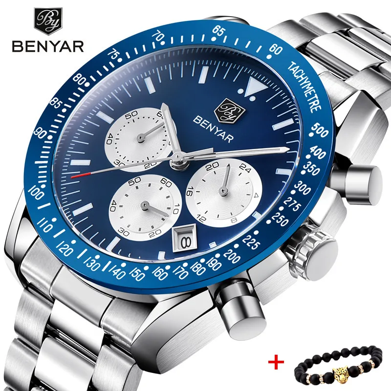 Goede Koop BENYAR Mannen Horloge Topmerk Luxe Full Staal Business Klok Quartz Horloge Mannen Toevallige Waterdichte Sport Horloges Relogio Masculino Goedkoop