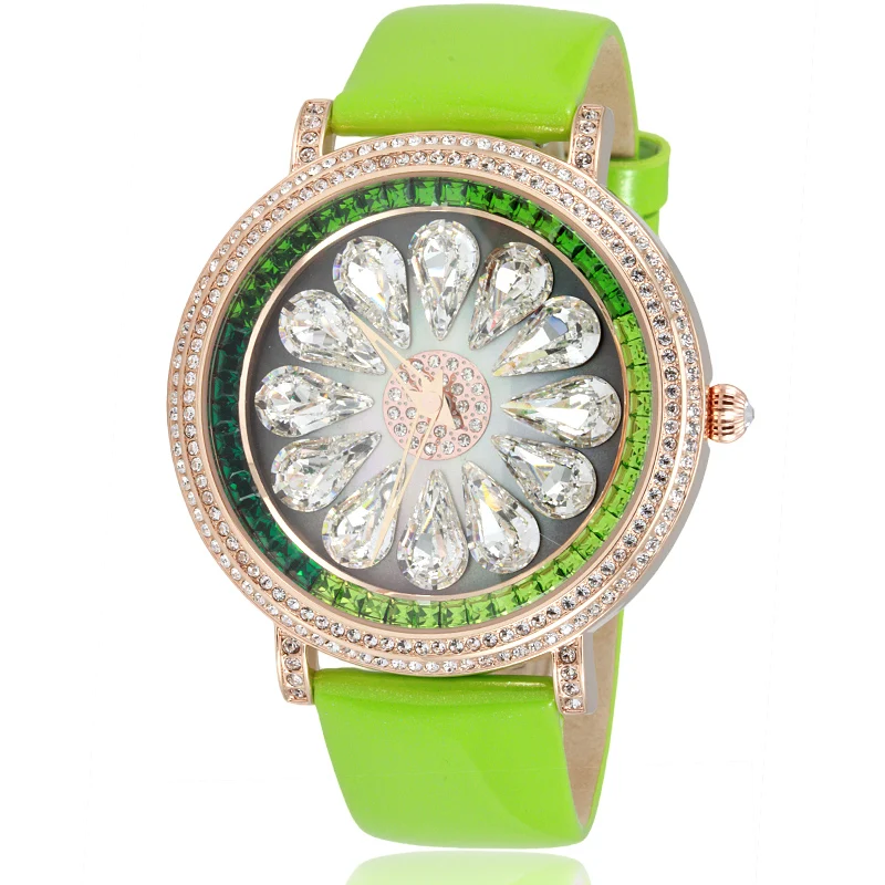Goede Kopen TOP Mode Grote Size Waterdrop Kristallen Horloges Fonkelende Vrouwen Real Leather Dress polshorloge Japan Quartz Relojes Montre Femme Goedkoop
