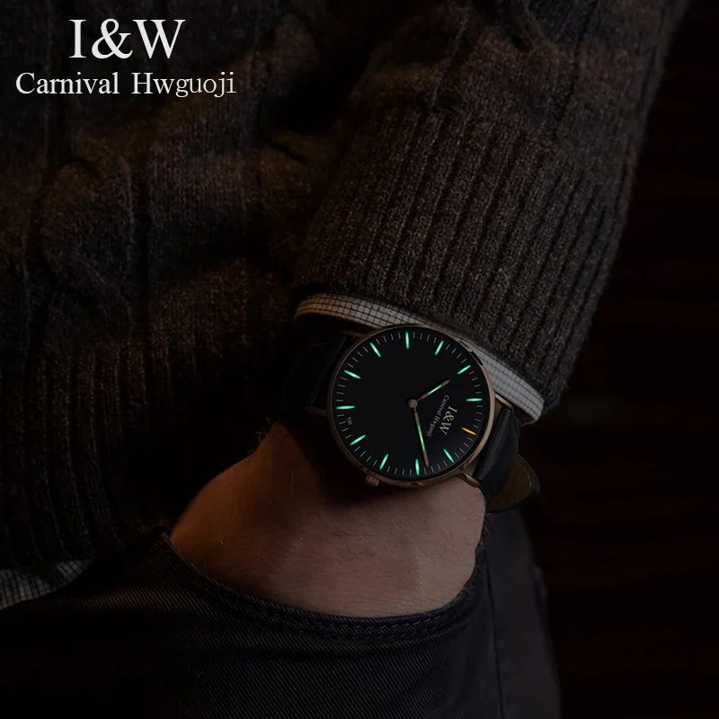 Beste Kopen CARNAVAL Tritium Lichtgevende Quartz Mannen Horloge Dunne