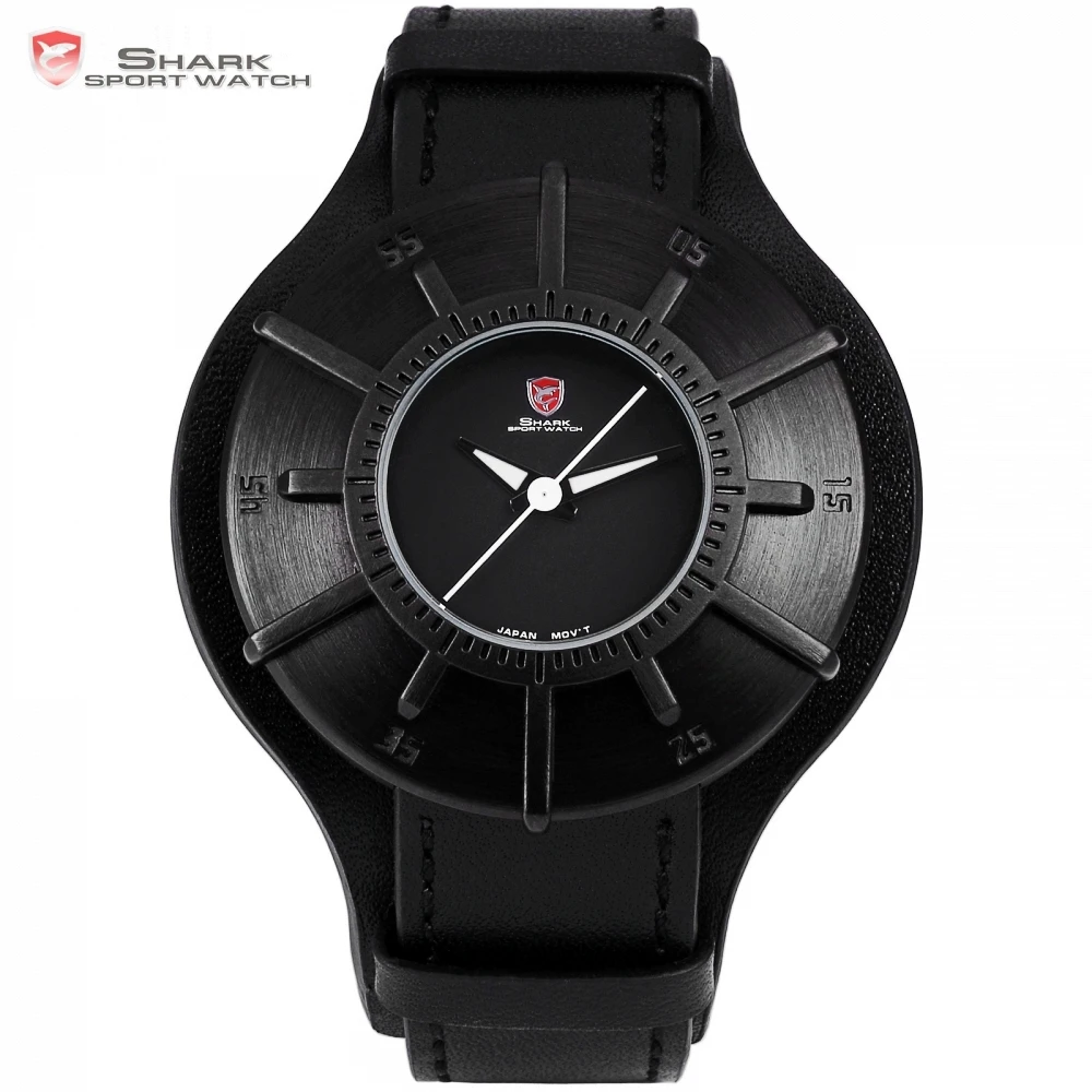 Goede Koop Silky Shark Sport Horloge 2018 Mannen Horloges Merk Luxe Zwart 3D Oversized Dial Militaire Quartz Echt Leer Mannelijke Klok SH482 Goedkoop