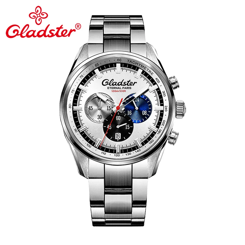 Kopen Goedkoop Gladster Fashion Gift Chronograph Heren Quartz Horloge Saffier Kristal Lichtgevende Analoge Mannen Horloges Rvs Man Klok Online