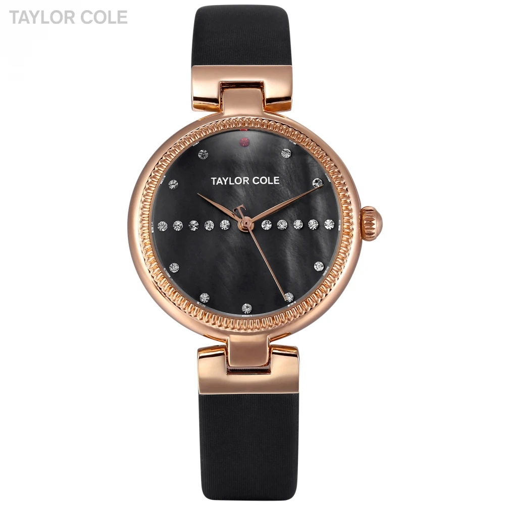 Kopen Goedkoop Luxe Merk Taylor Cole Vrouwen Horloge Rose Gouden Klok Zwarte Wijzerplaat Zwart Lederen Band Horloges Vrouwen Montre bayan saat TC116 Online