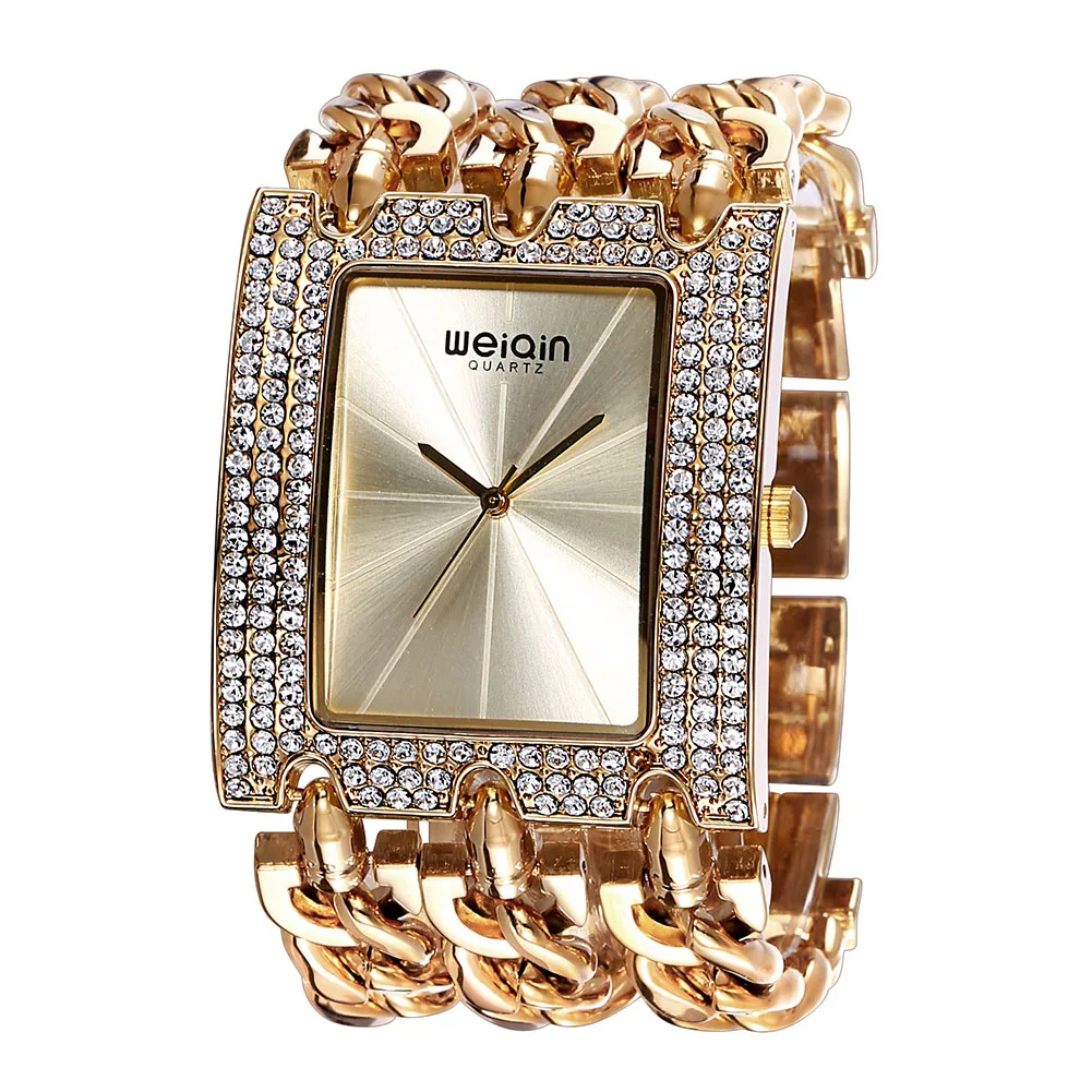 Beste Kopen WEIQIN Luxe Merk Kristal Gouden Armband Horloges Vrouwen
