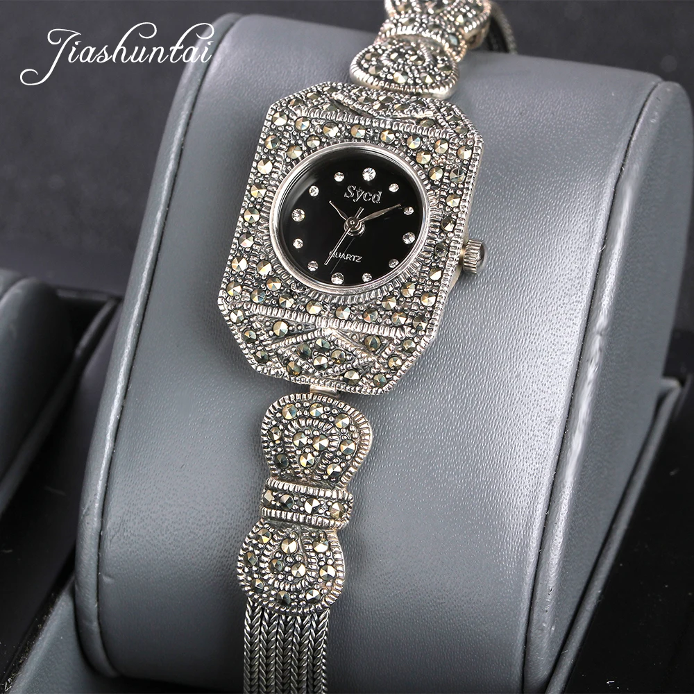 Beste Koop JIASHUNTAI Vintage 100% Zilver 925 Horloge Voor Vrouwen Retro 925 Sterling Zilveren Klok Vrouwelijke Armbanden Horloge Sieraden Goedkoop