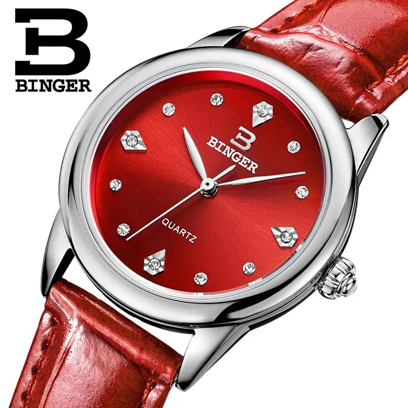 Beste Koop 2018 Nieuwe Binger vrouwen horloges luxe quartz vrouwen waterdicht 3 kleuren beschikbaar lederen band Horloges BG9006 3 Goedkoop