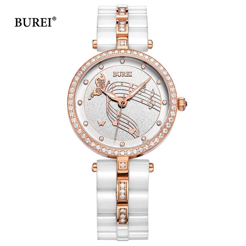 Goede Kopen BUREI Merk Dames Horloges Waterdichte Mode Keramische Armband Quartz Horloge Klok Vrouwen Zwart Goud Wit Relogio Feminino Goedkoop