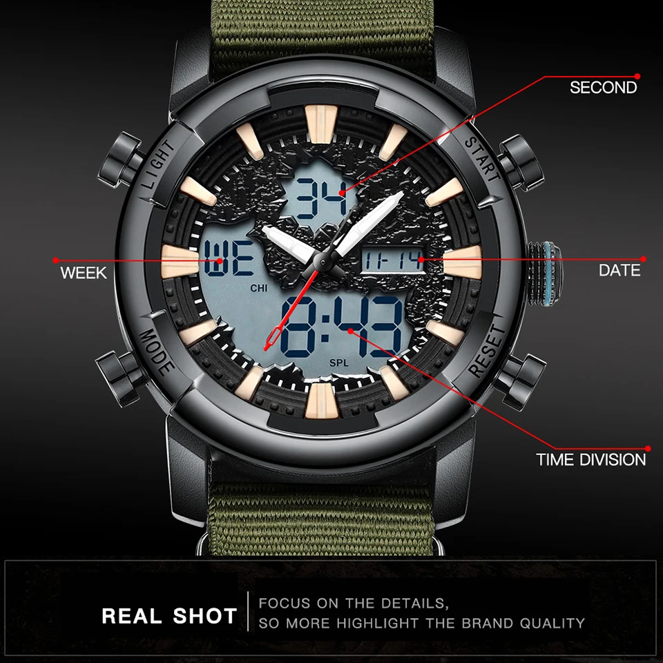Kopen Goedkoop Luxe Mannen Horloge Militaire Outdoor Waterdichte Sport Mannelijke Klok Datum Week Display Lichtgevende Wijzerplaat Mens Digitale Quartz Horloges Prijs