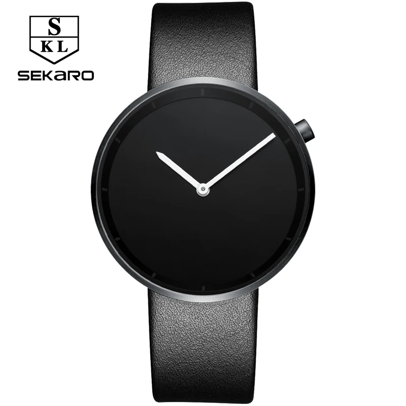 Kopen Goedkoop SEKARO 2018 mannen unisex rvs lederen band minimalistische mode casual business jurk quartz horloges voor vrouwen Prijs