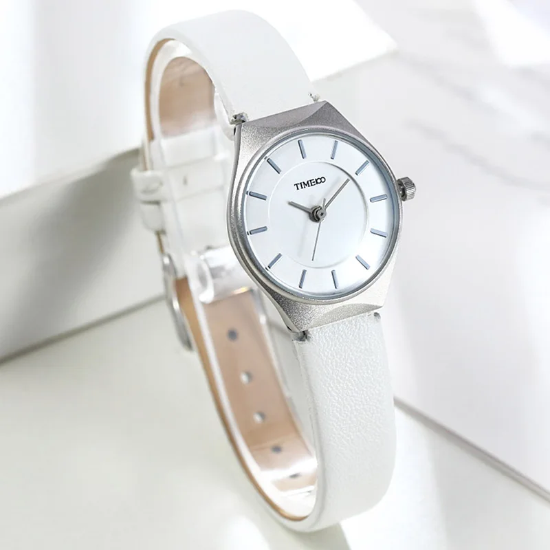 Beste Koop Time100 Eenvoudige Vrouwen Horloge Business ultradunne Dial Zwart Wit Koffie Lederen Band Dames Quartz Horloges relogio feminino Goedkoop