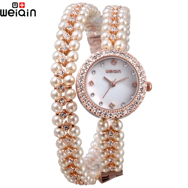 Beste Koop WEIQIN Originele Mode Parel Armband Band Horloges Voor Vrouwen Outdoor Vintage Dame Horloge Crystal Diamond Luxe Reloj Mujer Goedkoop