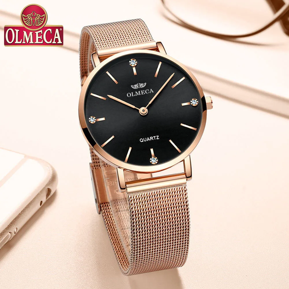 Kopen Goedkoop Fashion Brand Luxe Horloge Vrouwen Rose Goud Dames Jurk Horloge Ultra Dunne Quartz Mesh Waterdicht Strass Klok zegarek damski Online
