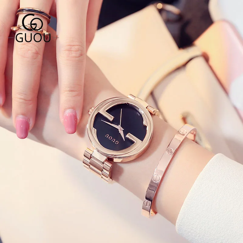 Beste Koop GUOU Gloednieuwe Mode Unieke Vrouwen Quartz Horloge relogio feminino lady Luxe Horloge Dames Jurk Uur Klok horloges Goedkoop
