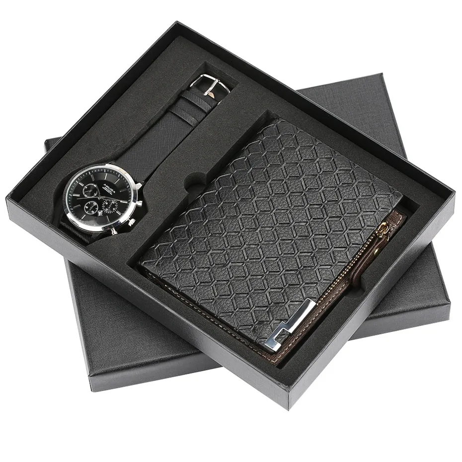 Gift Set Met Portemonnee Moderne Zwarte Mannelijke Horloges Pin Gesp