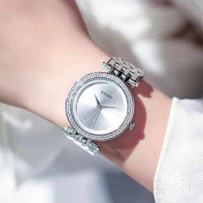 Kopen Goedkoop GUOU horloge 2018 Top merk mode Zilveren Vrouwen horloges luxe rvs vrouwelijke quartz horloge Meisje Strass horloges Reloj Prijs