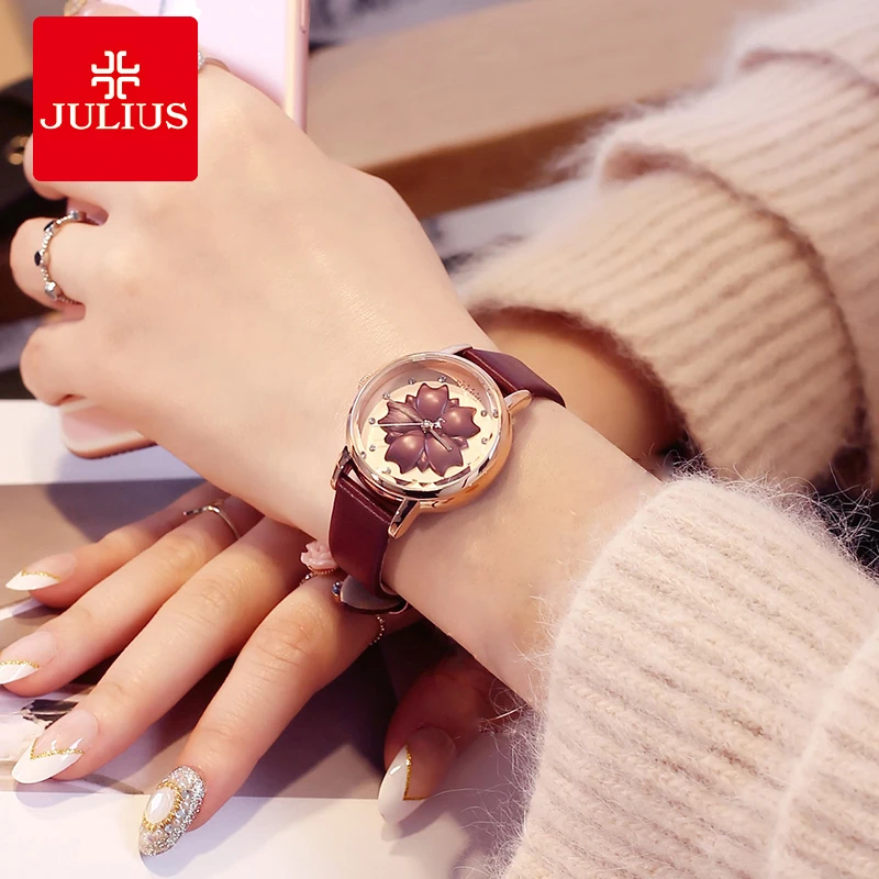 Goede Koop Julius Vrouwen Horloge 3D Bloem Wijzerplaat dames Lederen Armbanden Horloges Jurk Vrouwelijke Quartz Polshorloge Uur Klok Reloje Mujer Goedkoop