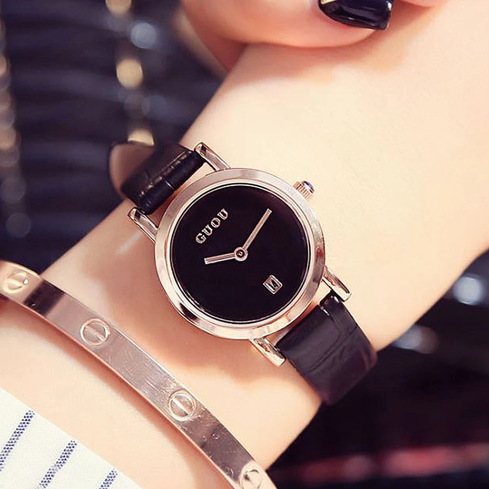 Kopen Goedkoop GUOU Mode Horloge vrouwen Horloges Voor Vrouwen Eenvoudige Dameshorloge Vrouwen Horloges Lederen Kalender Klok relogio feminino saat Online