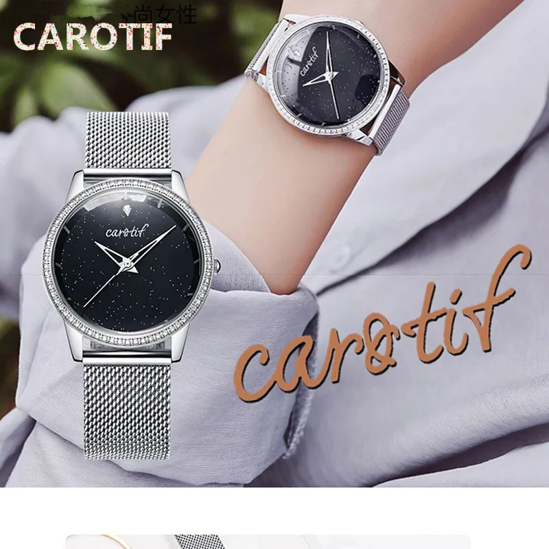 Kopen Goedkoop 2018 Luxe Merk Vrouwen Horloges montre femme Mode Jurk Dames horloge Rose Goud Ster Wijzerplaat Ontwerp Mesh Riem Quartz Horloge vrouw Online