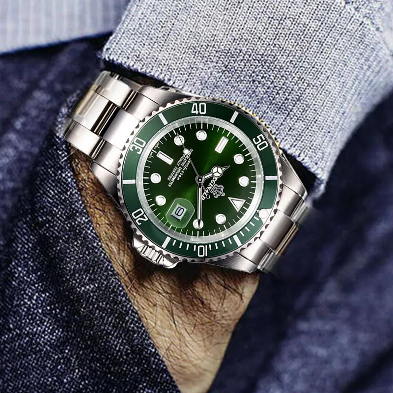 Goede Koop Mode Mannen Horloge Roestvrij Stalen Horloge Voor Mannen 30 m Waterdichte Groene Sport horloges 2115 Quartz Diver Mannelijke Klok reloj hombre Goedkoop