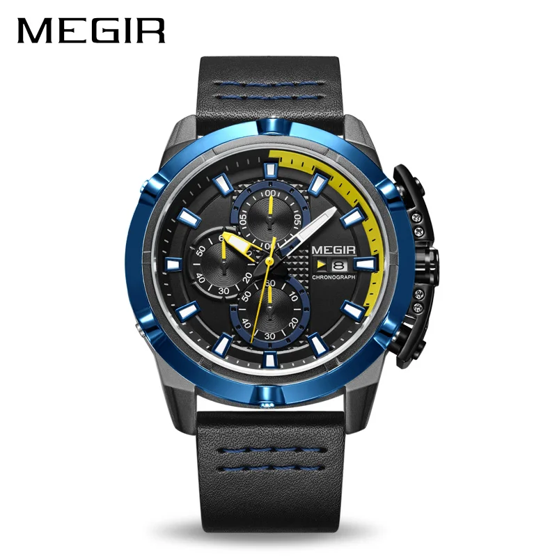 Kopen Goedkoop Top Merk Luxe MEGIR Mannen Sport Horloges Chronograaf Lederen Band Quartz Militaire Leger Horloge Klok Man Relogio Masculino Online