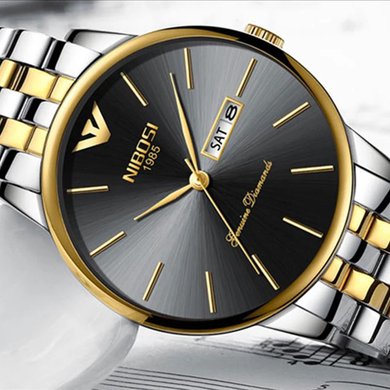 Kopen Goedkoop NIBOSI Heren Horloges Top Brand Luxe Zakelijke Quartz Gouden Horloge Mannen Vol Staal Mode Waterdichte Sport Klok Relogio Masculino Online