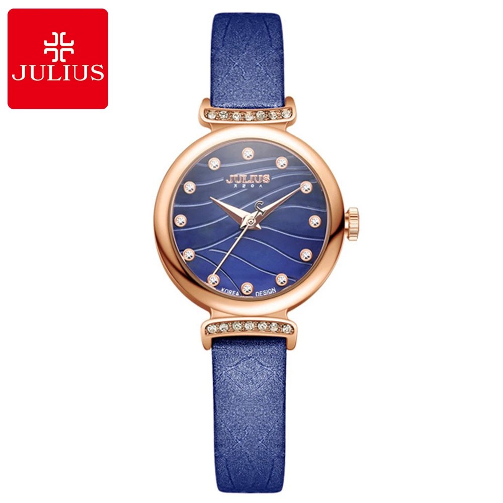 Beste Koop 2018 Meisje Water Wave Luxe Strass Stenen Lederen Band Waterdicht Horloge Vrouwen Roze Blauw Quartz Ronde Originele Julius Horloges Goedkoop