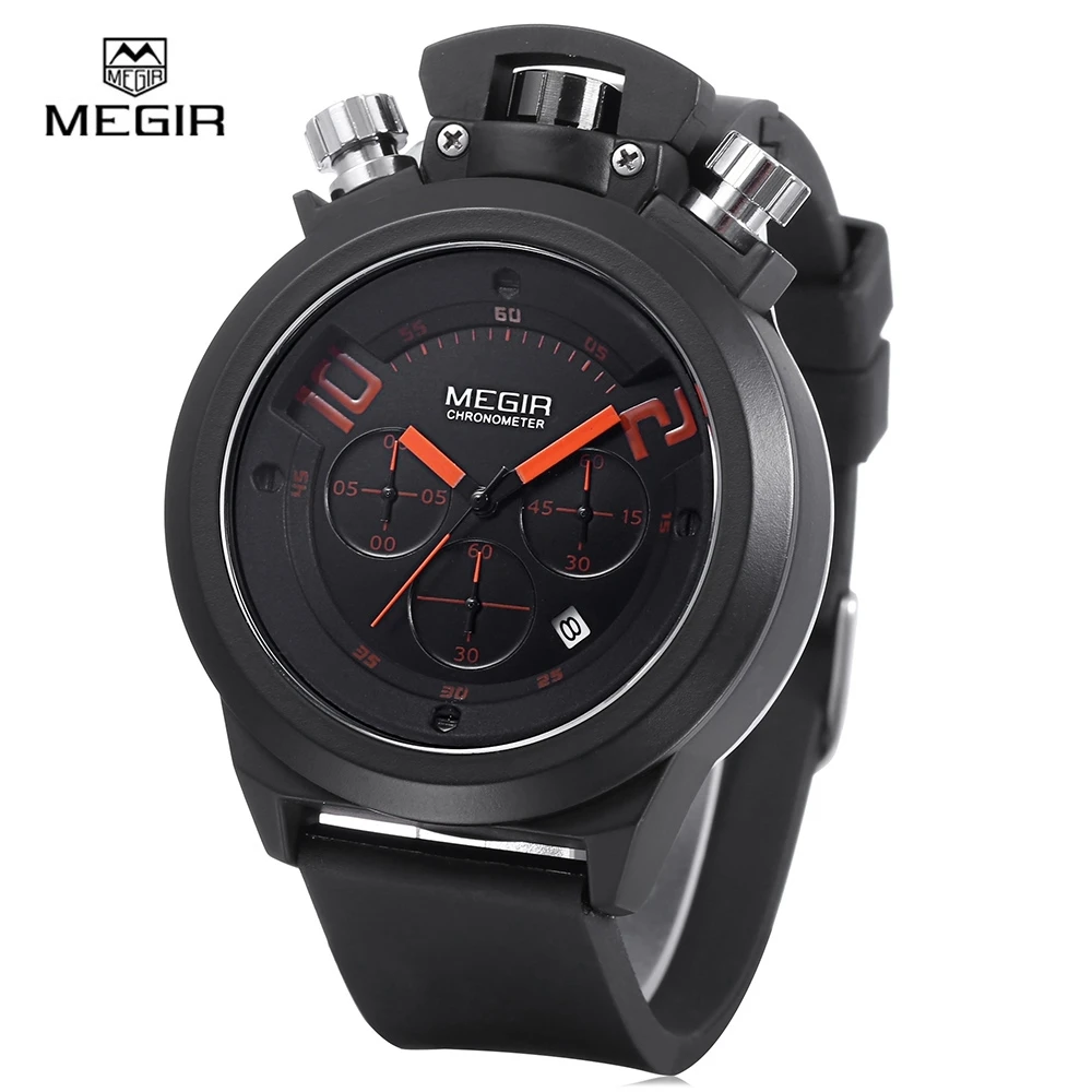 Beste Kopen 2018 Nieuwe Sport Mannen Horloge Top Merk MEGIR Quartz Horloges Luxe Casual Mode Horloge Drie Werken sub wijzerplaten Relogio Masculino Goedkoop