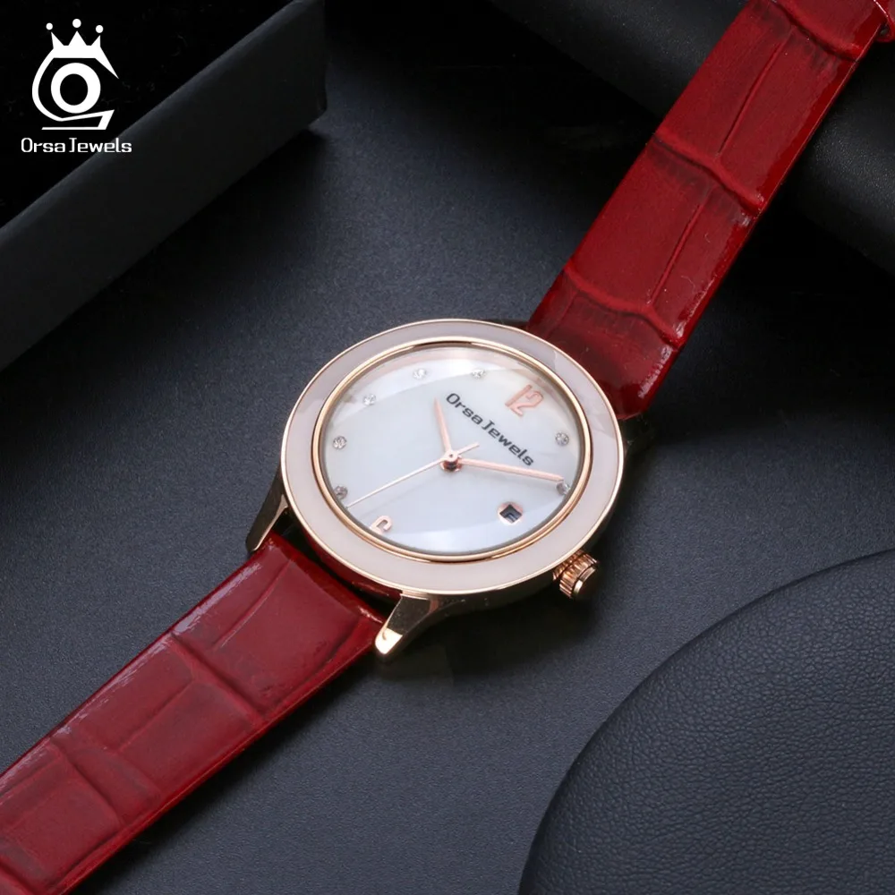 Beste Kopen ORSA JUWELEN Vrouwen Horloges Merk Beroemde Quartz Klok Lederen Shiny Rhinestone Meisje Horloge Party Gift Sieraden OW08 Goedkoop