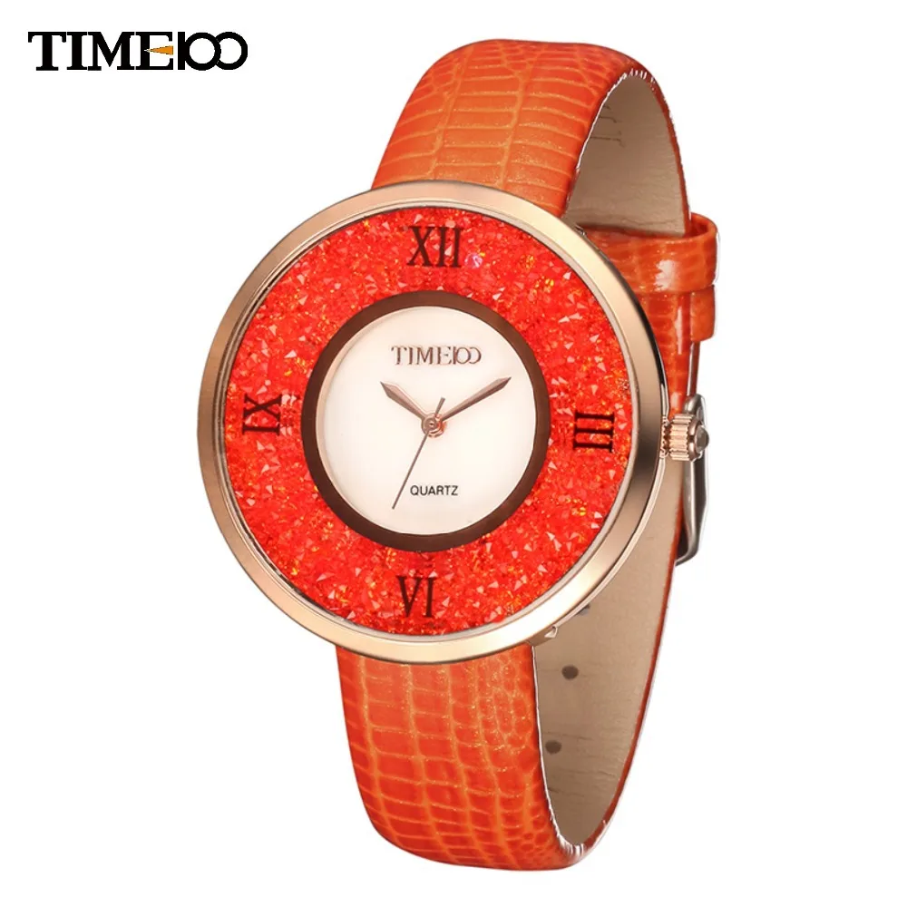 Goede Kopen TIME100 Dames Luxe Eenvoudige Legering Kristal Shell Dial Oranje Lederen Vrouwen Quartz Horloges Voor vrouwen W50280.03A Goedkoop