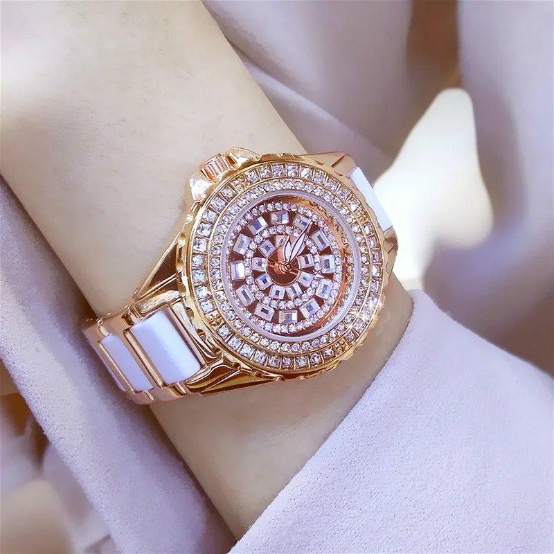 Kopen Goedkoop Luxe dame Kristal Horloge Vrouwen Jurk Horloge Mode Gift Rose Gold Horloges Dames Vrouwelijke Keramische Band Stalen Horloges Online