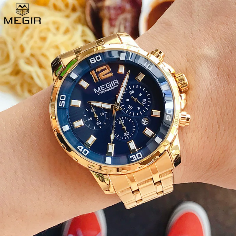 Goede Koop Chronograph heren Quartz Horloges MEGIR Roestvrij Stalen Band Waterdicht Kalender Mannelijke Klok Business Man Horloge Montre Homme Goedkoop