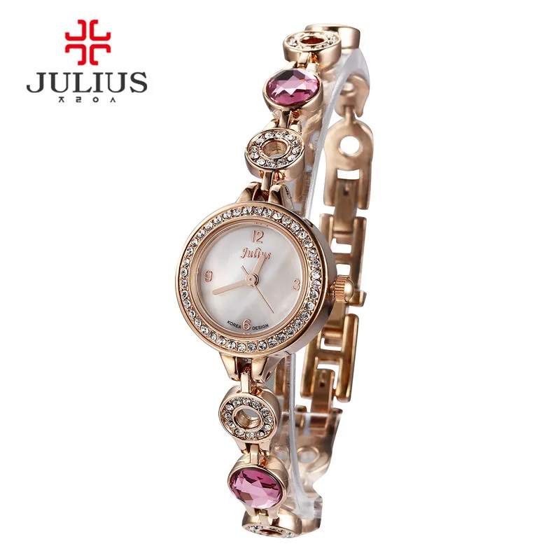 Beste Kopen Top Julius Dame vrouwen Polshorloge Fashion Uur Retro Crystal Rhinestone Armband Ketting Business Shell Meisje Verjaardagscadeau Goedkoop