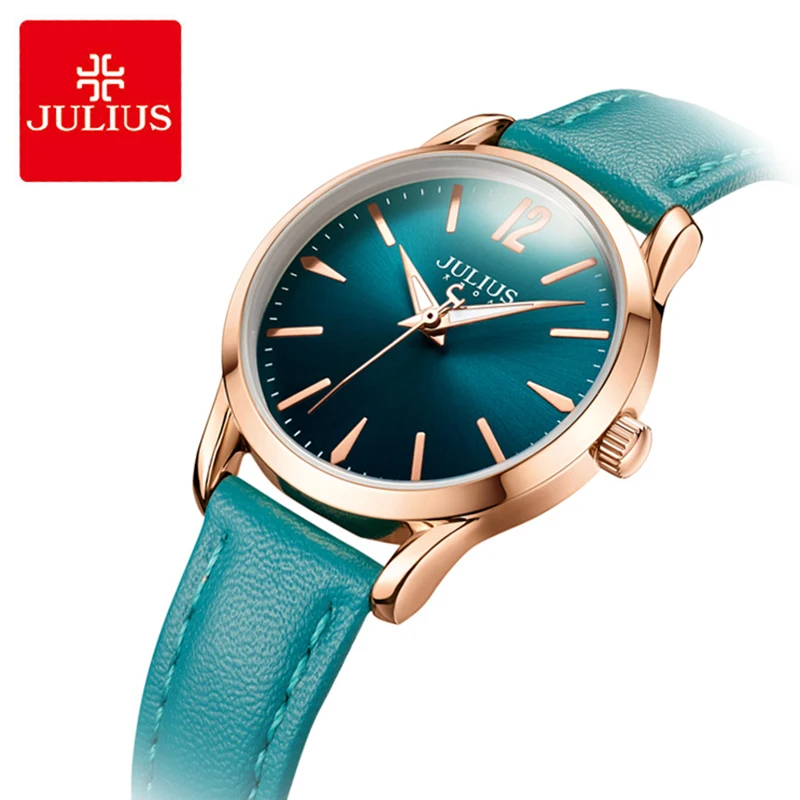 Kopen Goedkoop Julius Klassieke Blauwe lichtgevende Gebogen Naald Lederen Horloge Vrouw Merk Dame Waterdichte Quartz Horloges Klok Reloj Mujer Geschenken Prijs