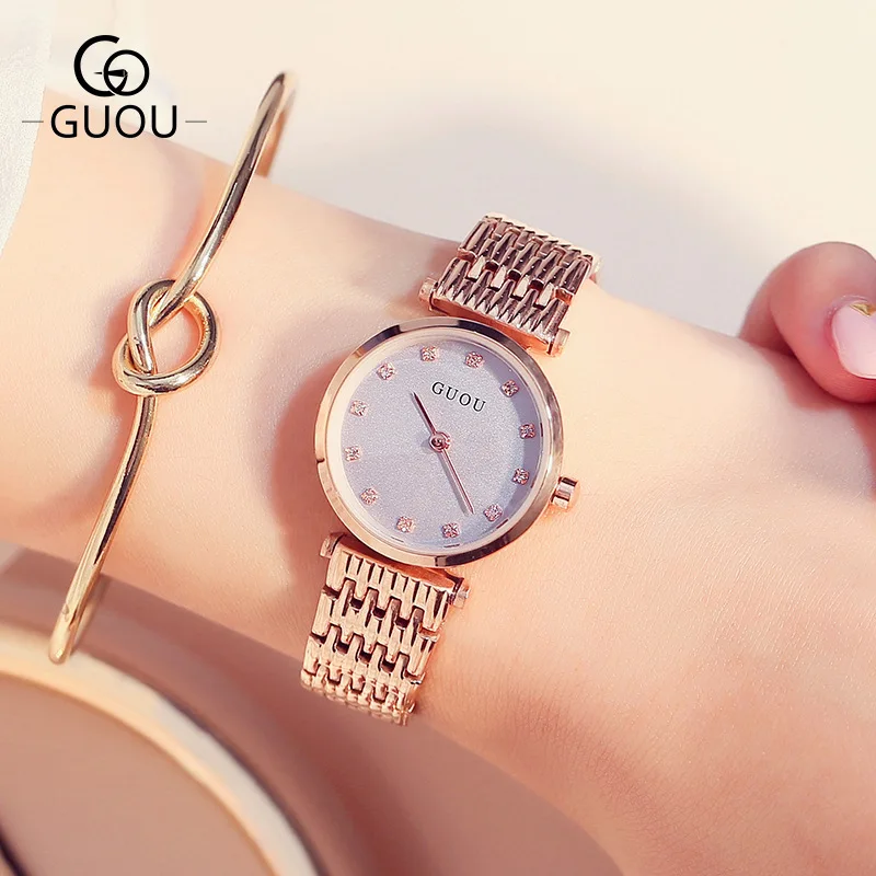 Goede Koop Originele GUOU Bling Crystal Rose Gold Volledige Rvs Quartz Vrouwen Dames Horloge Horloge Armband 8059 Goedkoop