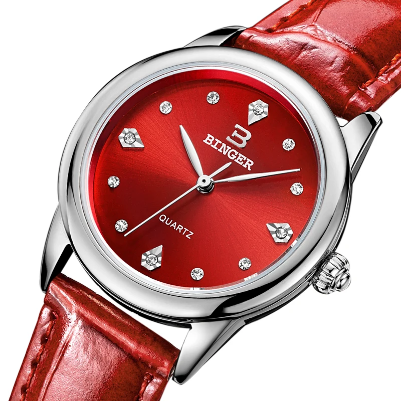 Kopen Goedkoop Zwitserland Binger Horloges Vrouwen Quartz Red Hot Shell