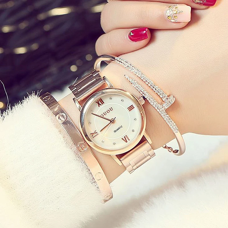 Kopen Goedkoop GUOU Dameshorloge Damesmode Horloges Reloj Mujer Armband Horloges Voor Vrouwen Rose Goud Klok Vrouwen relogio feminino saat Prijs